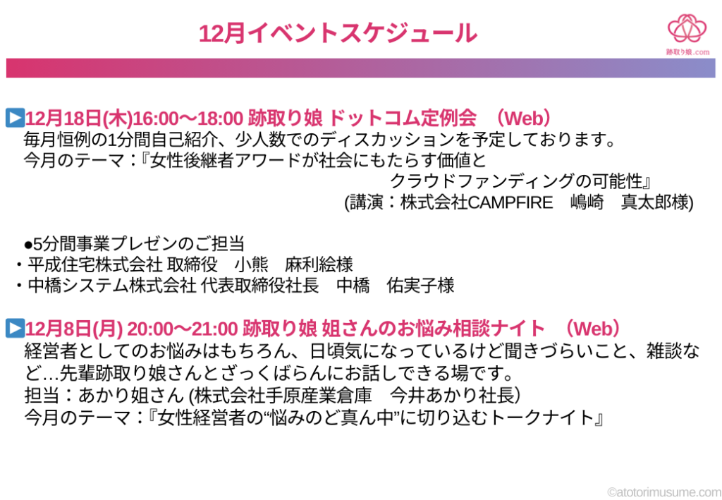 跡取り娘ドットコムより12月のイベントのご案内です。
